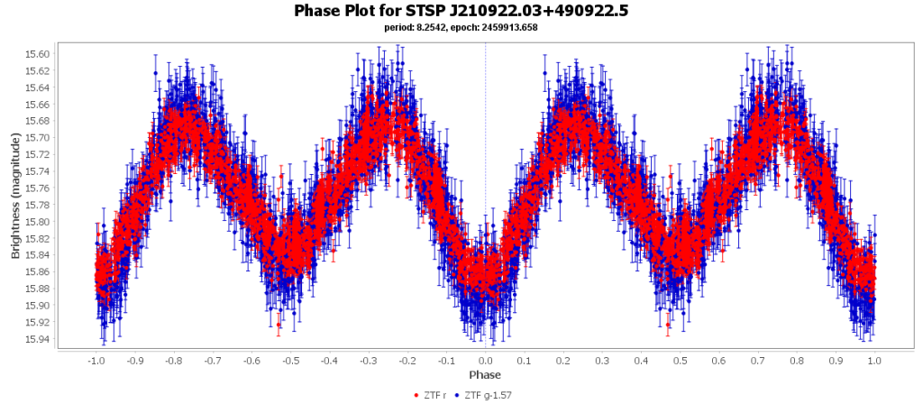 | J2000.0 | 21 09 22.03 +49 09 22.5 | Mag. range | 15.68 - 15.87 r |