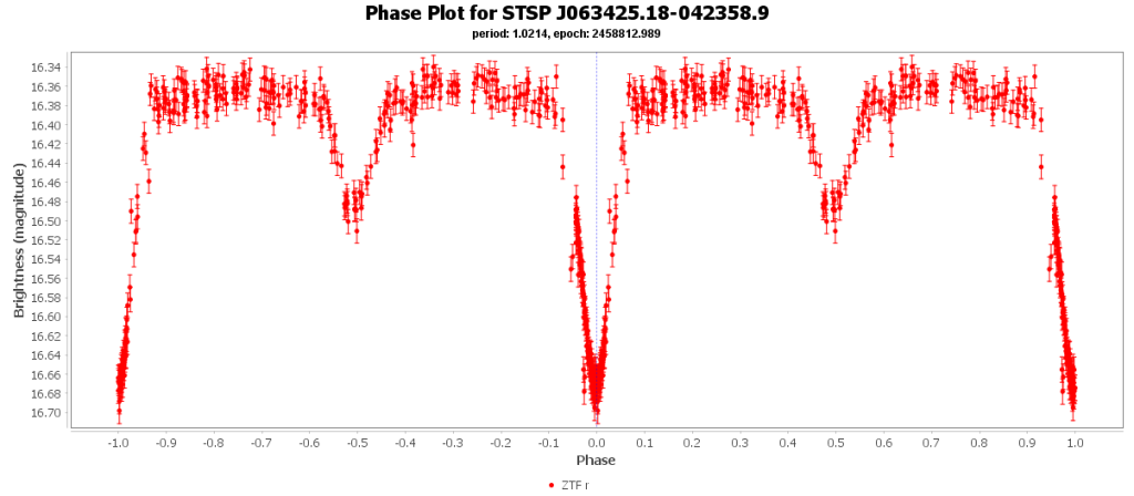 | J2000.0 | 06 34 25.18 -04 23 58.9 | Mag. range | 16.37 - 16.67 r |