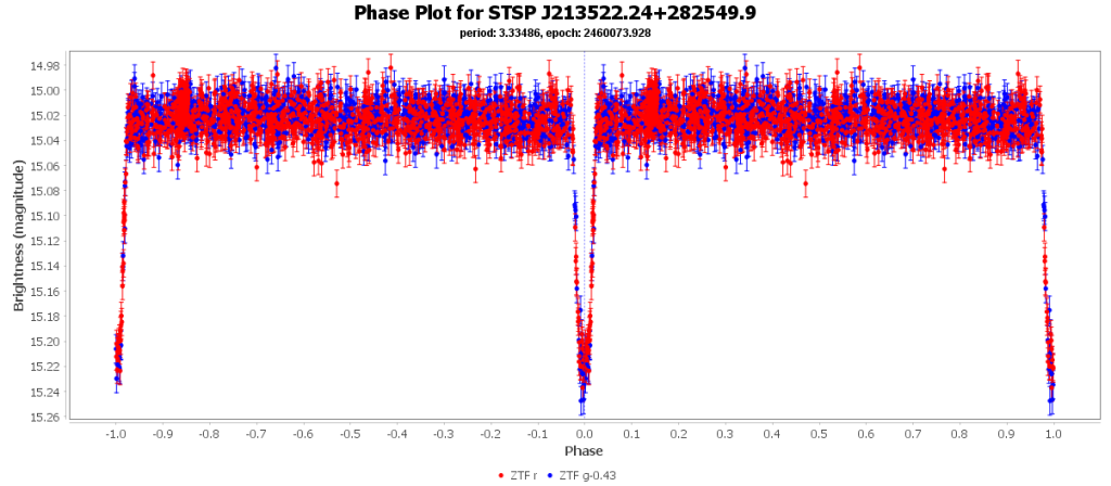 | J2000.0 | 21 35 22.24 +28 25 49.9 | Mag. range | 15.02 - 15.22 r |