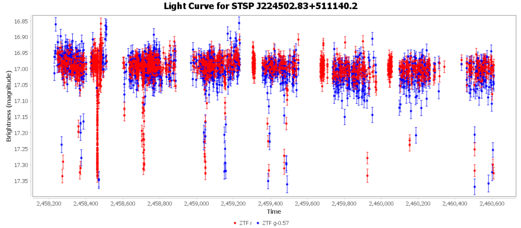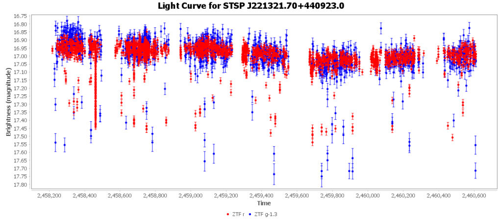| J2000.0 | 22 05 15.83 +50 55 17.5 | Mag. range | 14.45 - 15.53 r |