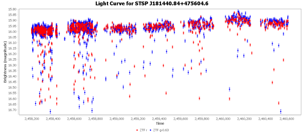 | J2000.0 | 18 14 40.84 +47 56 04.6 | Mag. range | 15.83 - 16.64 r |