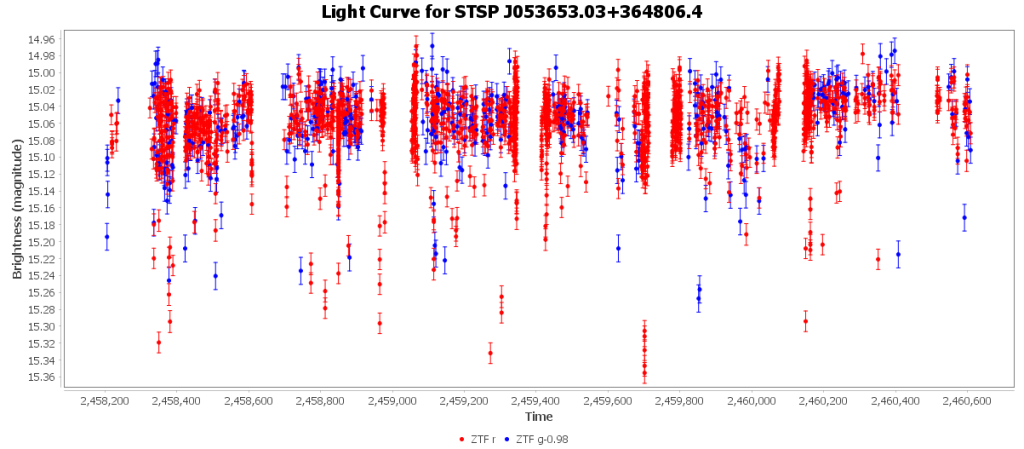 | J2000.0 | 05 36 53.03 +36 48 06.4 | Mag. range | 15.00 - 15.35 r |