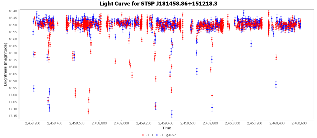 | J2000.0 | 18 14 58.86 +15 12 18.3 | Mag. range | 16.46 - 17.08 r |