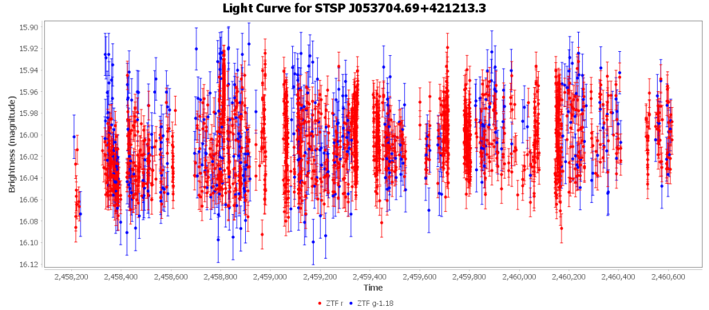 | J2000.0 | 05 37 04.69 +42 12 13.3 | Mag. range | 15.96 - 16.04 r |